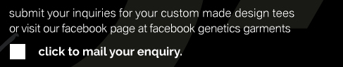 Genetics Garments is one of the pioneers in custom designed t-shirts label in Malaysia, owned by Idealogika Creative, a creative advertising based company in Kuala Lumpur. Before Genetics Garments established, Idealogika Creative has made many designs for miscellaneous companies, corporate brands and our ad-hoc clients worldwide. Recently in 2008 Idealogika Creative decided to create a label brand Genetics Garments (earlier was genetics) as their customed designed label, we started to brand our customed designed under Genetics Garments as a categories of our creative specialties, where you can ask us to design and print your own t-shirts for your team, company, or any occasion befitting custom-made t-shirts. We all agreed that customed t-shirts bring communities together. We specialized in vector based design to make sure you will get the best quality of product to suits your need. Get personalized for small or huge groups to make your event more memorable. Have a chat with us by sending e-mail and see what we can do for you. |